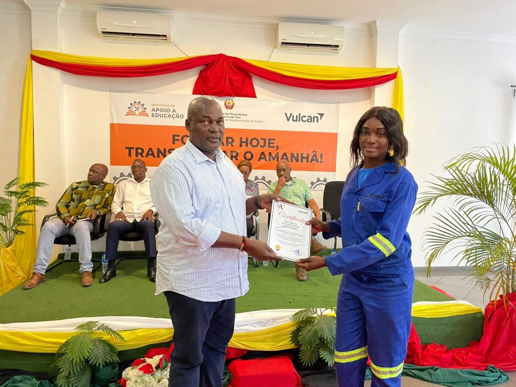 Na província de Tete, realizou-se recentemente uma cerimónia de entrega de certificados a formandos que beneficiaram do programa de apoio à educação promovido pelo Governo da República de Moçambique, com o apoio da empresa mineradora Vulcan.